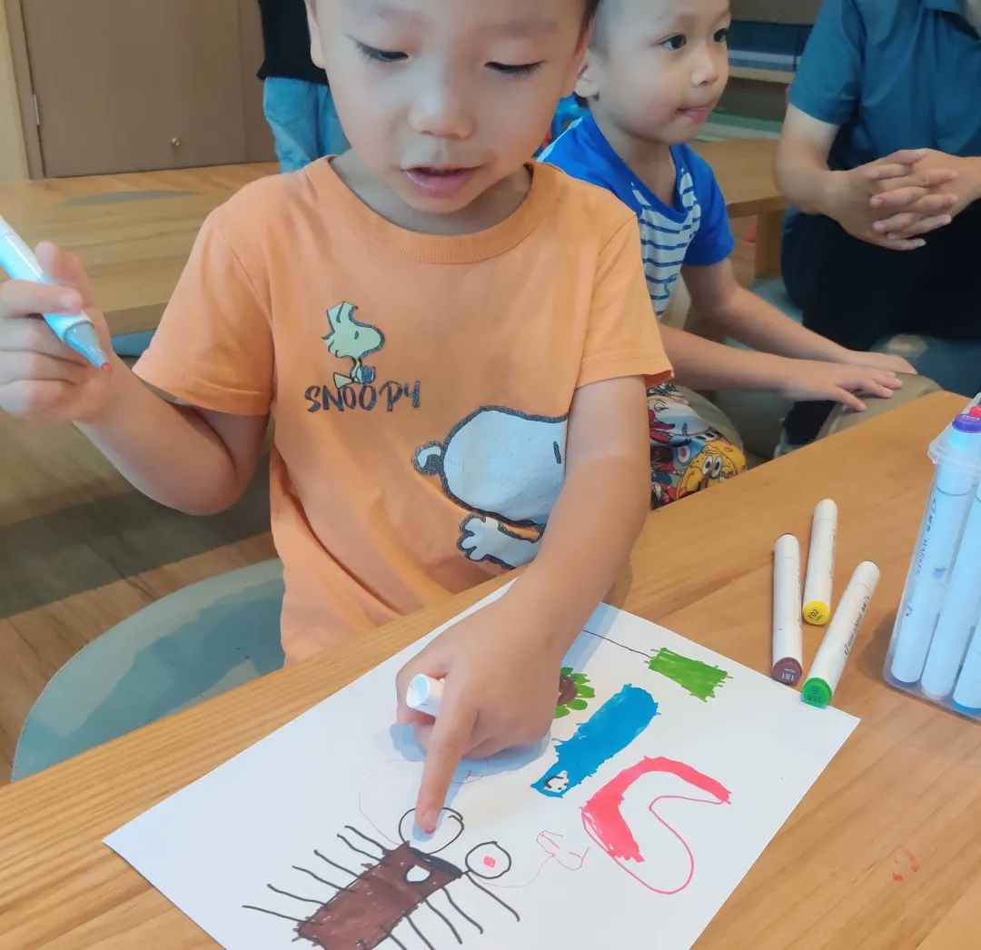 小小艺术家们拿起画笔,把灵感注入画纸: