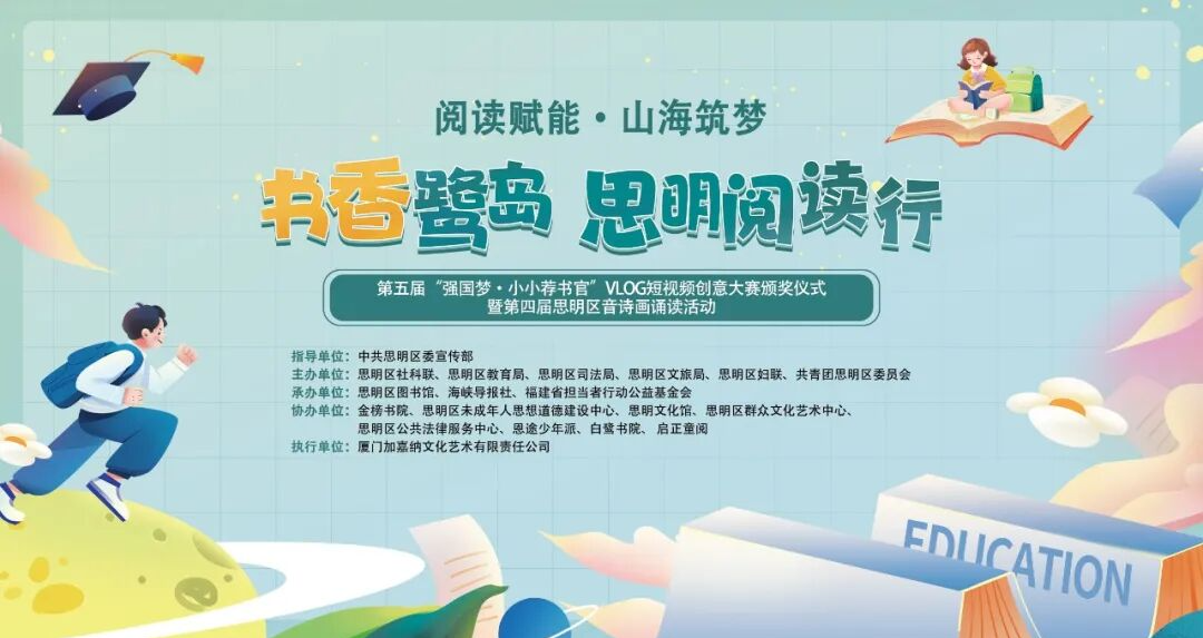 本次活动由中共思明区委宣传部指导,思明区社科联、思明区教育局、思明区司法局、思明区文旅局、思明区妇联、共青团思明区委员会主办,思明区图书馆、海峡导报社、福建省担当者行动公益基金会承办,金榜书院、思明区未成年人思想道德建设中心、思明文化馆、思明区群众文化艺术中心、思明区公共法律服务中心、恩途少年派、白鹭书院、 启正童阅协办。
