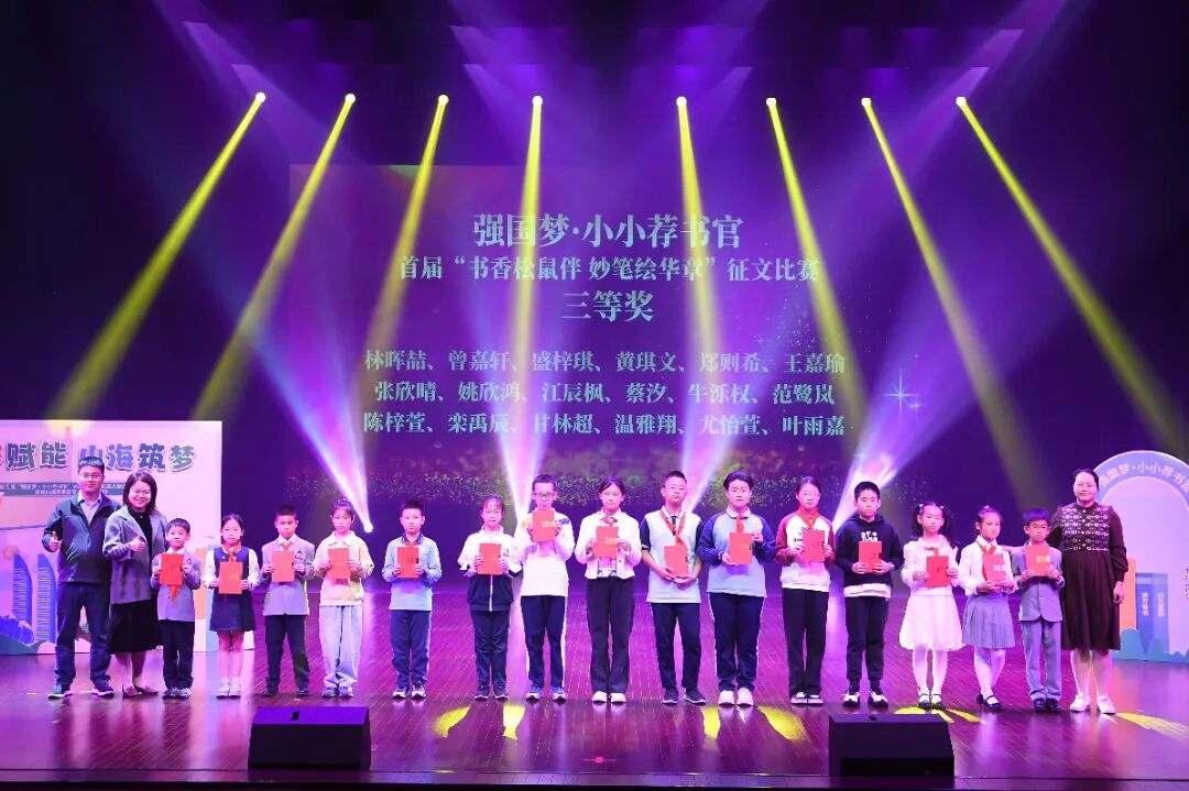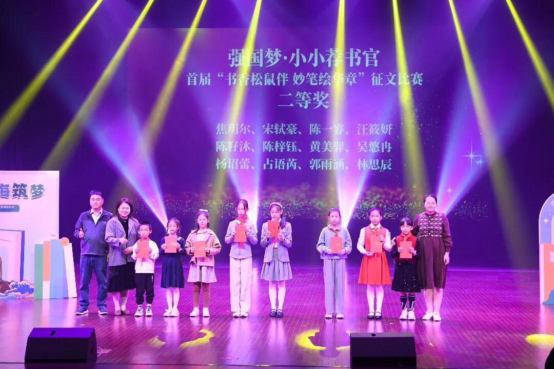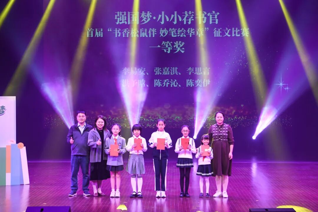 现场同步为首届“书香松鼠伴 妙笔绘华章”写作大赛获奖者颁奖,有36人荣获写作大赛一、二、三等奖,23人荣获优秀奖。
