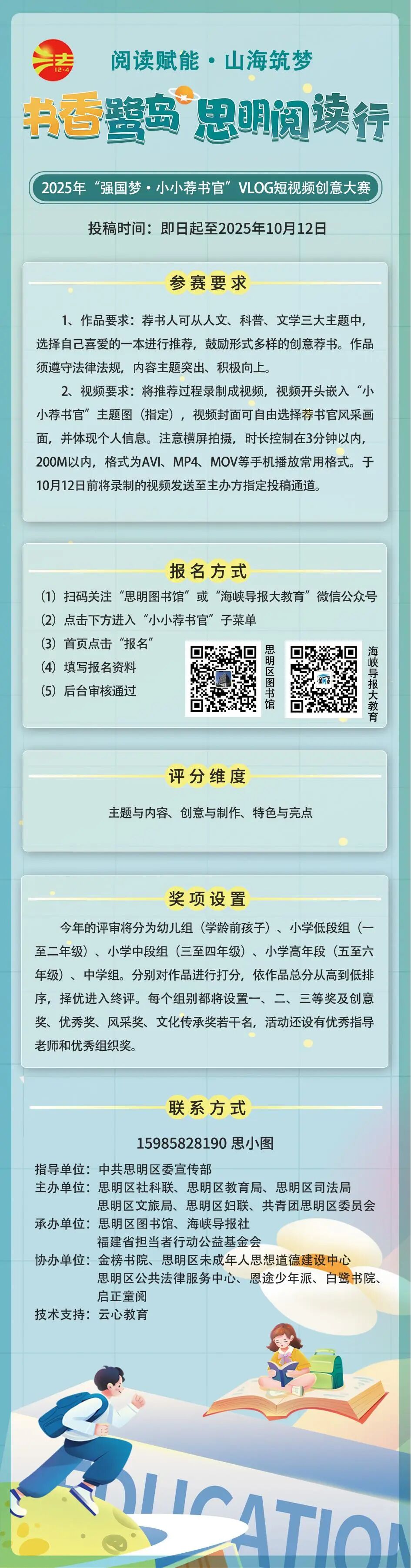 应广大参与者的积极响应,也为便于大家更充分地准备作品,第五届“强国梦·小小荐书官”VLOG短视频创意大赛的官方投稿截止日期,将由原定的10月10日,延长至2025年10月12日。