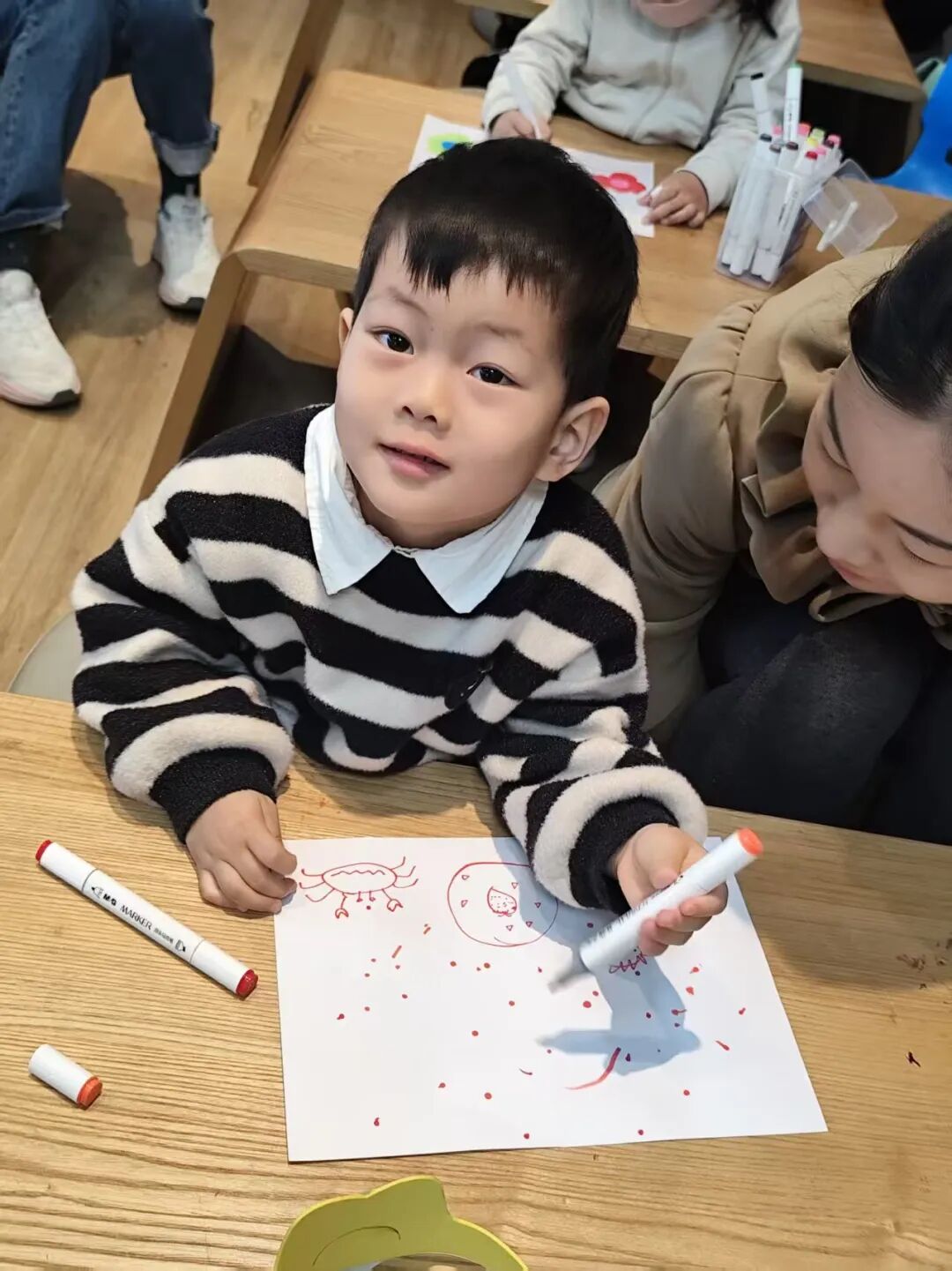 孩子们的笔下,流淌出独一无二的内心世界。每一幅画都是一个丰富的内心宇宙,孩子们骄傲地分享着自己的收藏,也让在场的家长们看到,那些看似无用的“发呆”和想象,是如此珍贵的心灵宝藏。