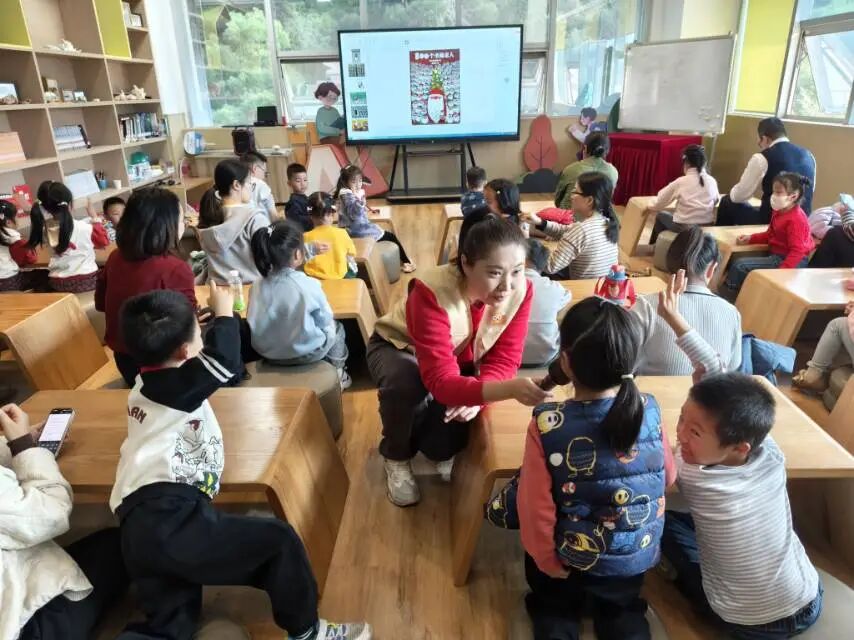 紧接着,宝贝们全程眼神发亮,跟着故事节奏时而紧张、时而欢笑,沉浸式穿梭在圣诞魔法小镇的奇妙世界里!“老师!我发现绘本里的圣诞老人的工作和衣服图案是一样的~” “这个圣诞老人他的鼻子和其他人都不同”课堂上,孩子们的小手举得像森林里的小树苗,一个个充满童趣的发现让老师频频惊喜。围绕绘本,我们设计了层层递进的互动问题,孩子们不仅积极抢答,还主动分享自己的独特见解,让绘本阅读变得更有深度。热烈的互动中,宝贝们不仅感受到了圣诞的温暖与美好,更悄悄 get 了 “分享让快乐翻倍” 的小道理,对“圣诞老人的责任:爱与分享” 有了超真切的理解~