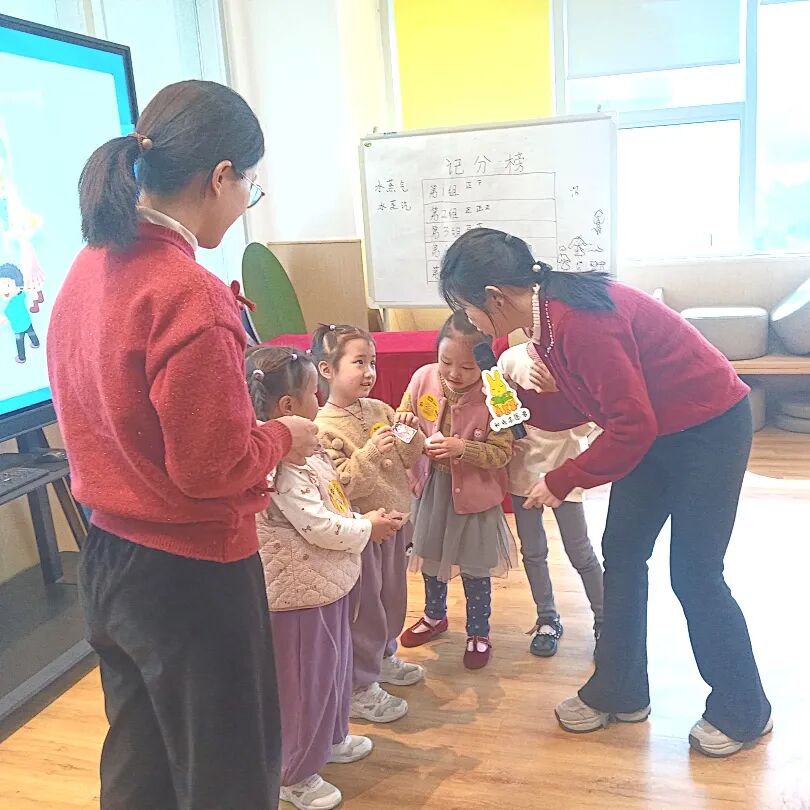 课程伊始,“走走停停” 趣味游戏点燃全场热情。孩子们跟着节奏融入集体,第二轮神秘表情贴环节更添欢乐,大家分享着 “开心”“害羞” 等表情,抽到 “幸运” 与 “倒霉” 表情的小意外,自然引出绘本主题,为后续绘本阅读埋下伏笔。
