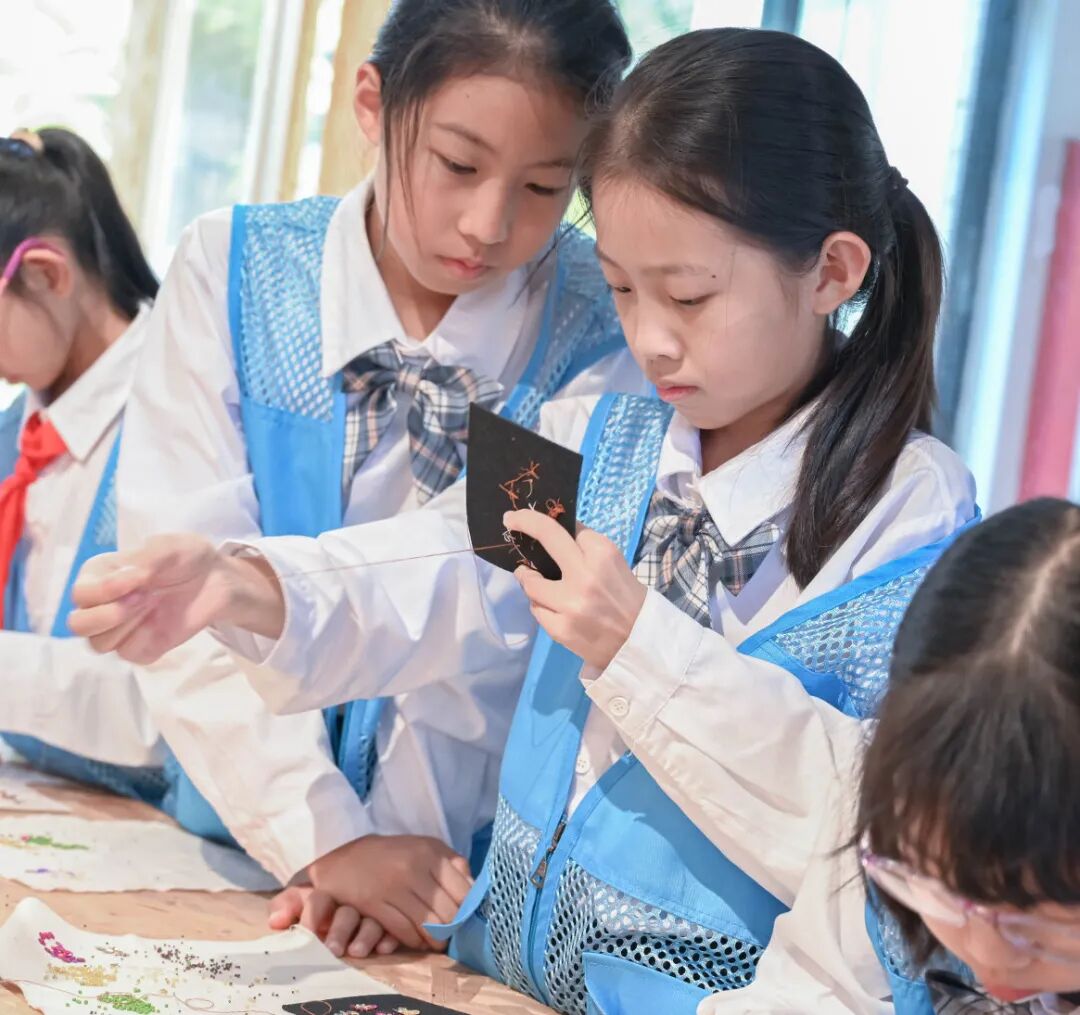 我看着老师手上的梅花图,情不自禁念起“梅花香自苦寒来,匠人之佳作,皆经无数磕碰炼成。”语毕,捏针理线,一针一线穿珠固定,最后一颗珍珠落定,布上梅花 “绽放”,珠粒含光恰似晨露梅朵。