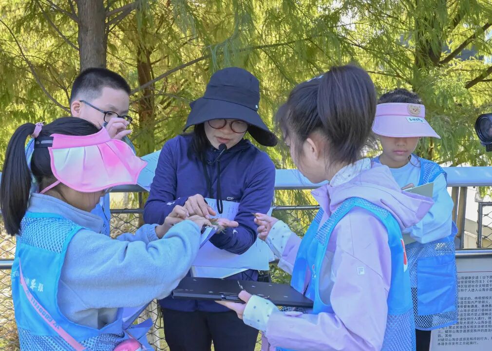 阳光穿过枝叶,在步道上洒下跳动的金箔,孩子们踮脚触摸叶片,感受 “秋日暖阳的触感”