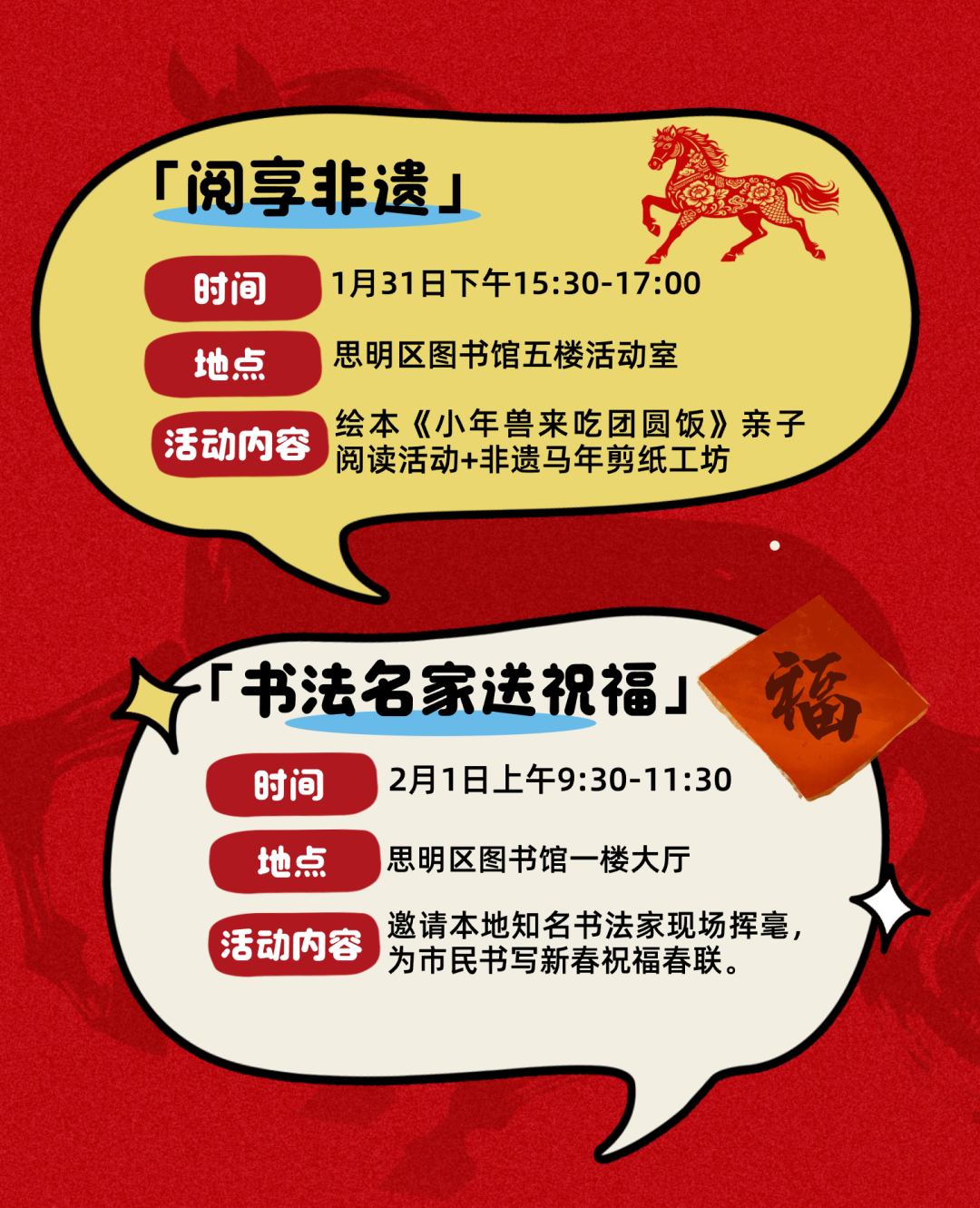值此2026甲辰龙年尾声、丙午马年将至之际,思明区图书馆邀您——策书为骥,踏墨成春: